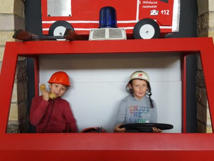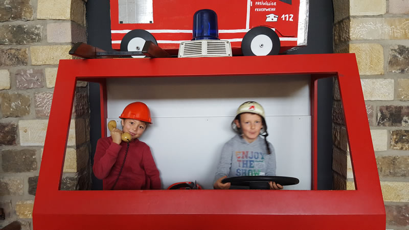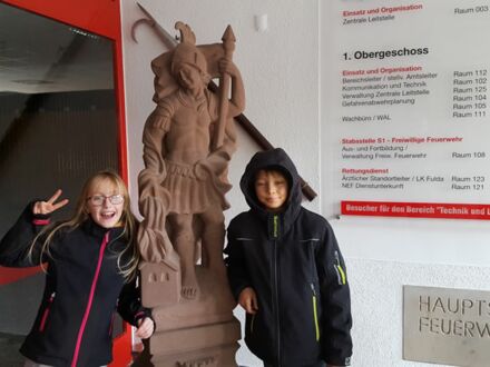Danach gingen wir zur Feuerwache, wo uns die Stadtjugendwartin der Fuldaer Feuerwehr empfing. Auch hier erhielten wir viele Informationen rund um die Feuerwehr und die Notrufzentrale und die Kinder durften auch in ein Einsatzfahrzeug einsteigen.