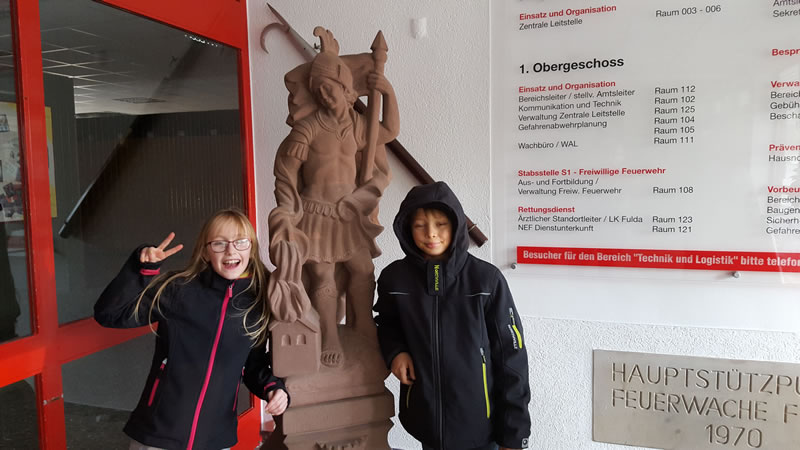Danach gingen wir zur Feuerwache, wo uns die Stadtjugendwartin der Fuldaer Feuerwehr empfing. Auch hier erhielten wir viele Informationen rund um die Feuerwehr und die Notrufzentrale und die Kinder durften auch in ein Einsatzfahrzeug einsteigen.